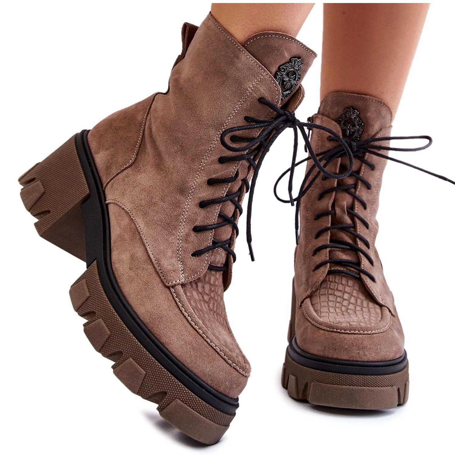 PL5 PL5 Velúr női meleg trapper csizma világosbarna Rehin bézs