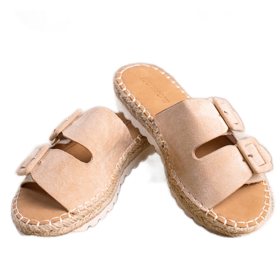 SHELOVET SHELOVET Velúr papucs csatokkal bézs