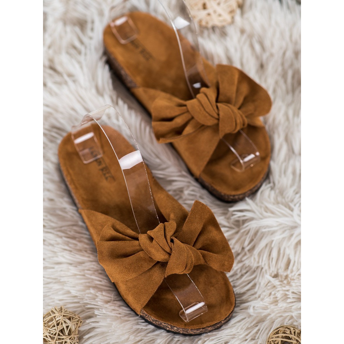 Részletek: SHELOVET Velúr papucs íjjal barna