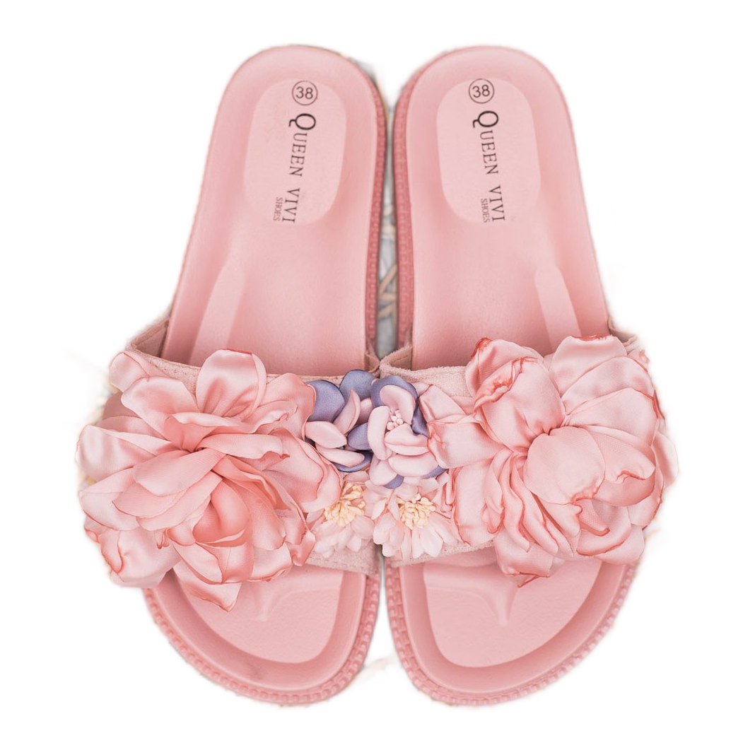 Részletek: Queen Vivi Velúr papucs virágokkal rózsaszín