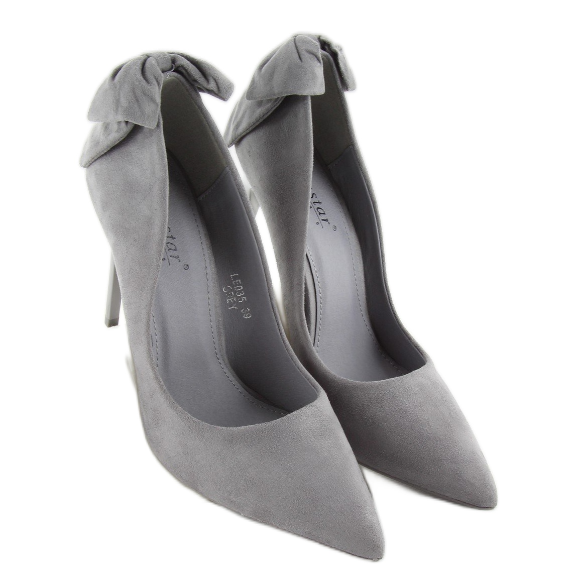 A velúr magassarkú masnival LE035 Grey az elegancia és az elegancia kvintesszenciája, amely minden helyzetben felkelti a figyelmet. Ezek a klasszikus női 11 cm-es magassarkú pumpák tökéletesen illeszkednek a divatirányzatokhoz, ötvözik a kényelmet és a stílust.
