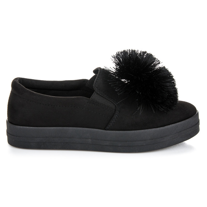 A stílusos pompon egyedi karaktert ad, megkülönböztetve ezt a modellt a többitől. Minimalista, minta nélküli dizájnjuknak köszönhetően a fekete Vices slip-onok tökéletesen passzolnak a legkülönfélébb ruhákhoz – a hétköznapi farmerektől a nőiesebb ruhákig.