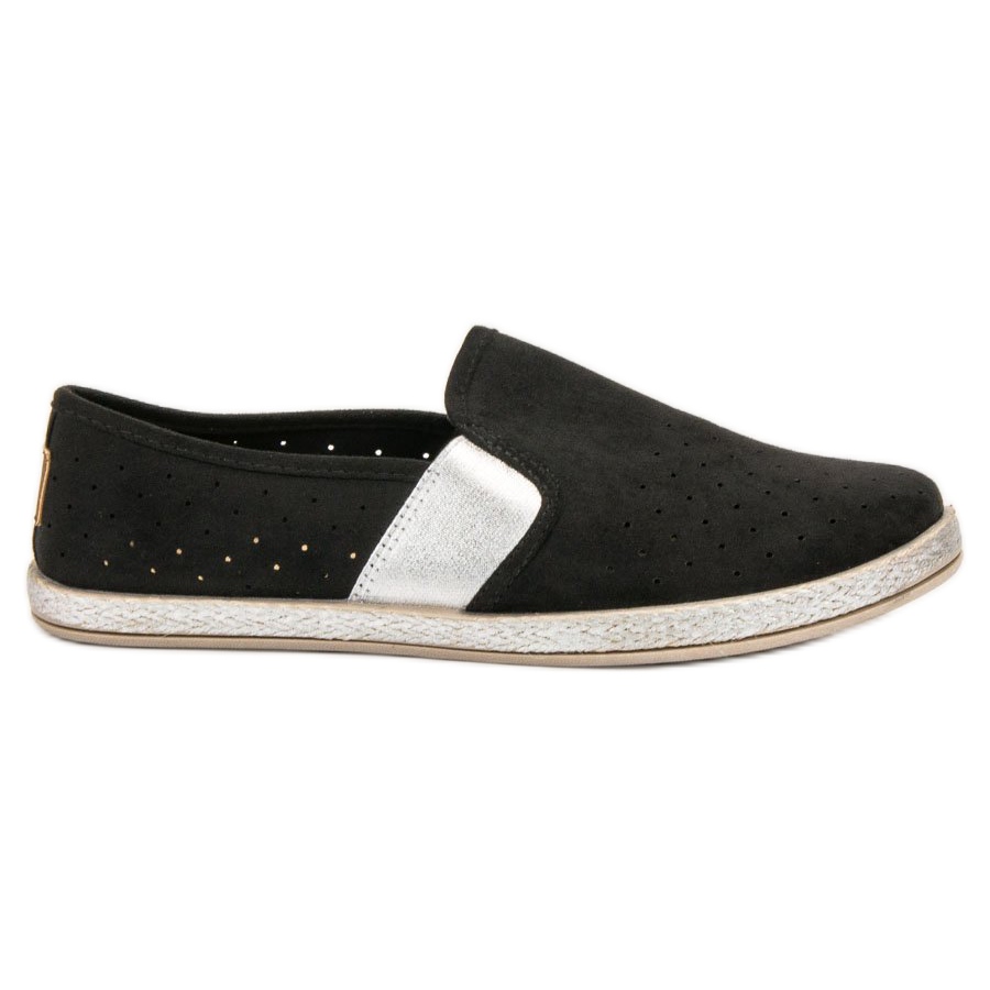 Fedezze fel a kényelmet és a stílust a Mckeylor márka fekete, áttört női cipőivel. Kiváló minőségű ökológiai velúrbőrből készültek, így az elegancia és a szabadság tökéletes kombinációja. Egyedi dizájnjuk, amelyet gumis, oldalsó ezüst csíkokkal egészítenek ki, modern karaktert kölcsönöznek nekik, tökéletes a mindennapi stílushoz.