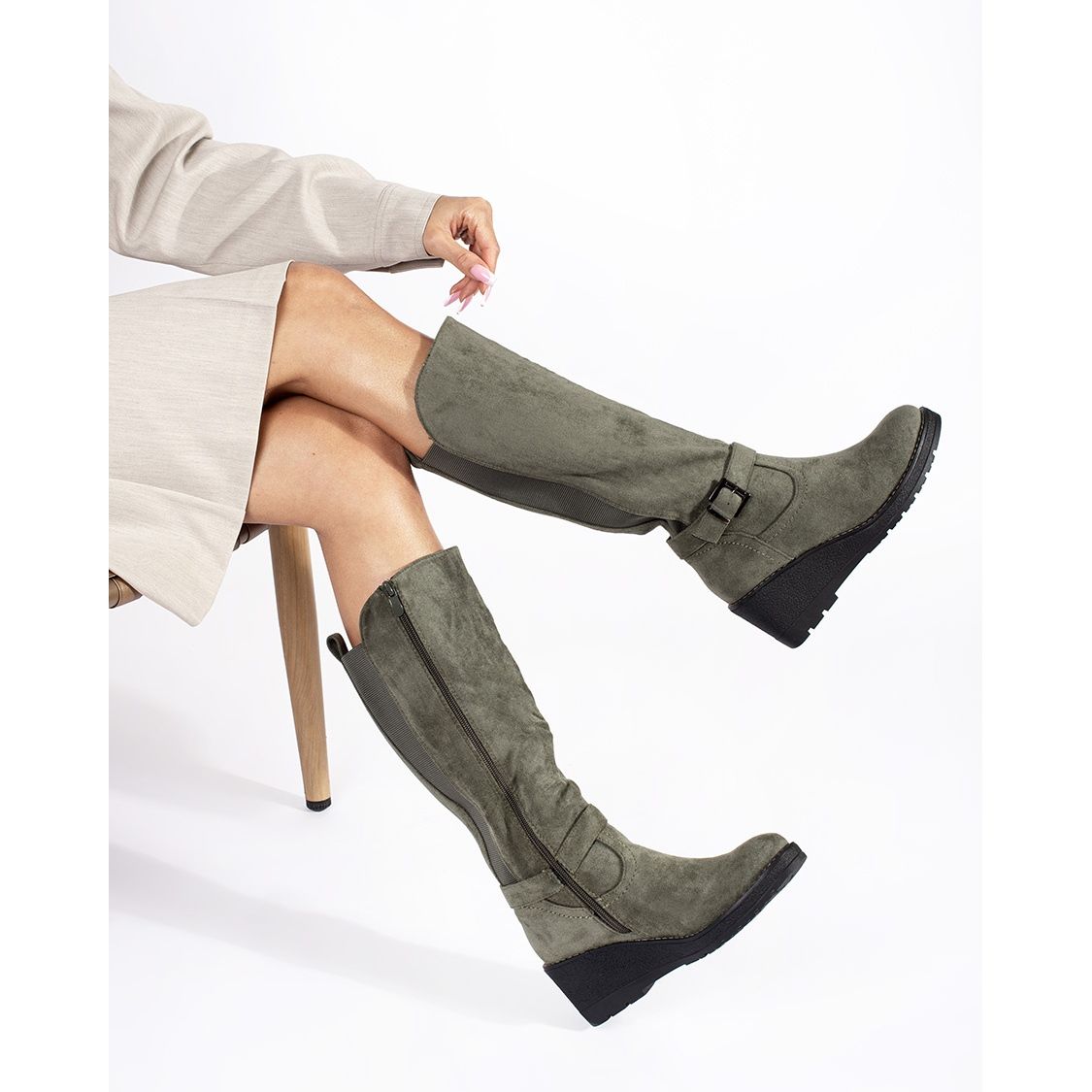 - Modell: Velúr sötétzöld ékcsizma