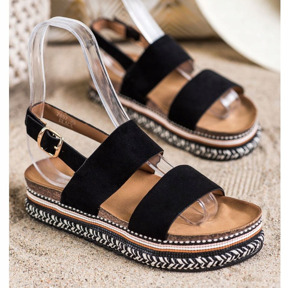 Ideal Shoes Ideal Shoes Velúr szandál a platformon fekete