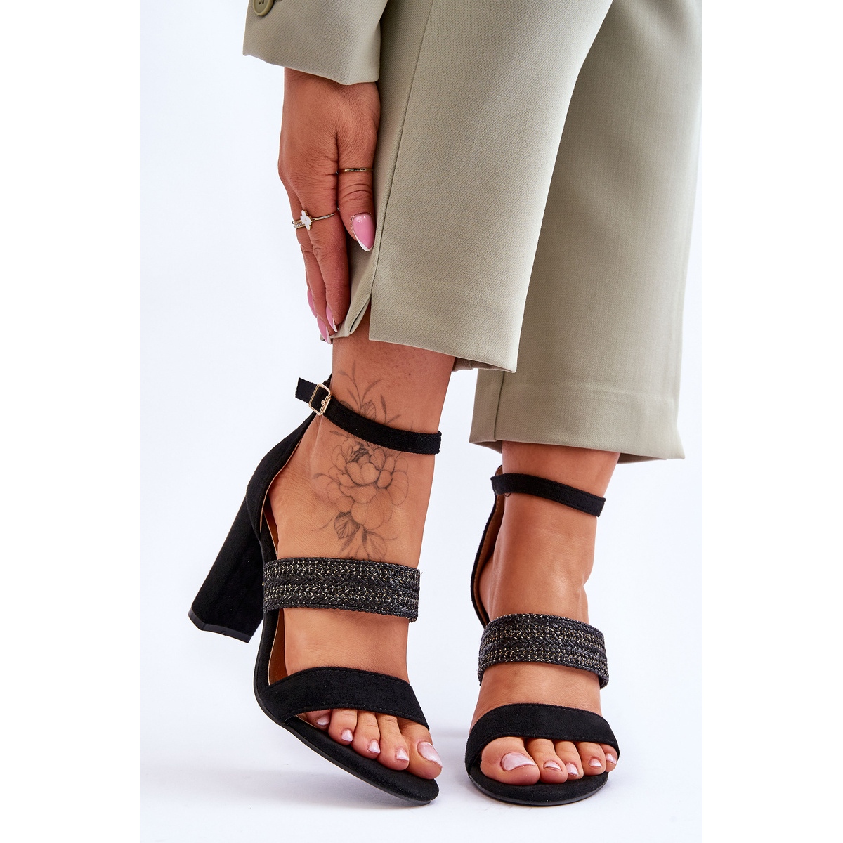 Suede szandál fonott magas sarkú cipővel - Roselia (fekete)