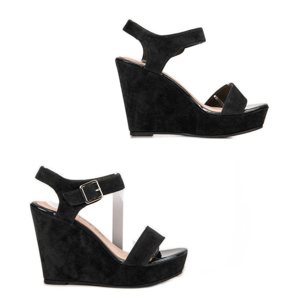 Fedezze fel az egyedi stílust és kényelmet a Vinceza fekete organikus velúr szandáljával. Ezek az elegáns cipők tökéletes választás önbizalommal rendelkező nők számára, akik szeretnék hangsúlyozni egyéniségüket. A szandálokat a magas, 11,5 cm-es ék jellemzi, amely meghosszabbítja és szabaddá teszi a lábakat, elegáns és eleganciát adva bármilyen stílusnak.