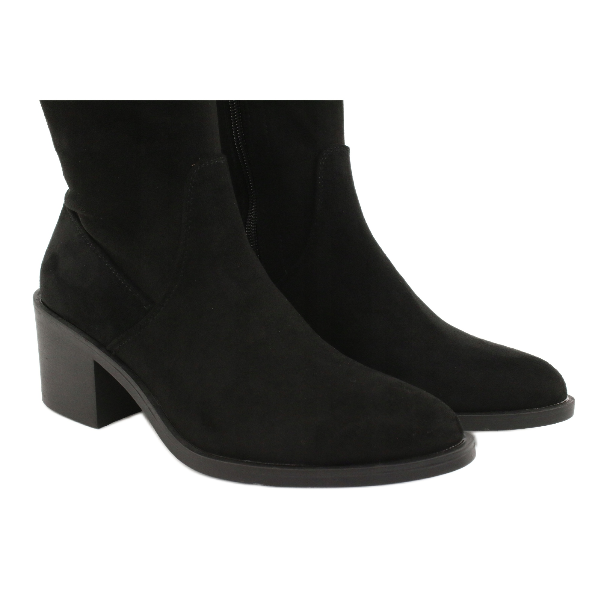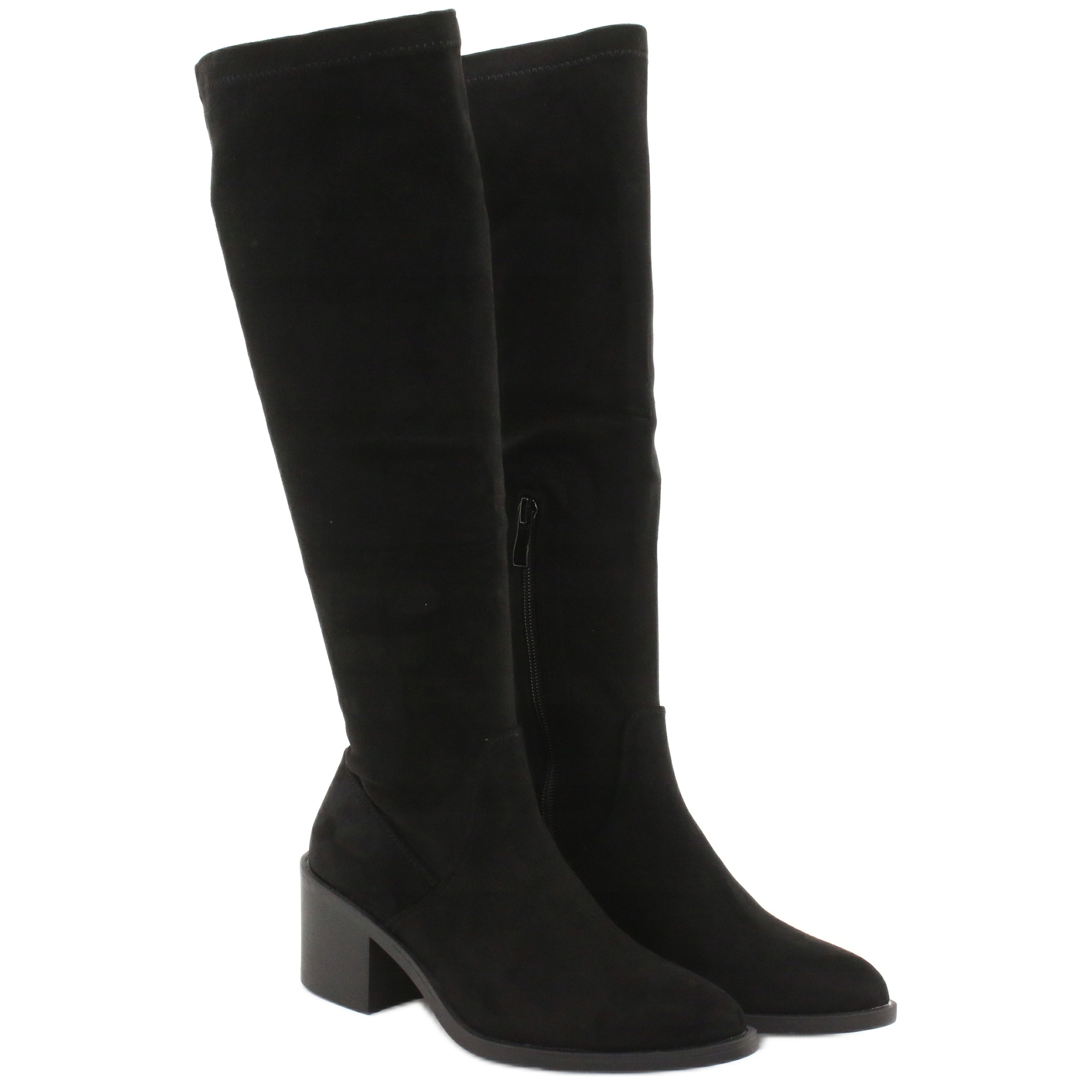 A magas, térdig érő felsőrész és a puha textilhab talpbetét lélegzővé teszi a lábfejet és egyben véd a hideg ellen. A csizmák a felsőrész alján található praktikus cipzárral vannak rögzítve, ami megkönnyíti a fel- és levételüket. Az 5,5 cm-es sarokkal ez a csizma néhány centiméterrel megnöveli a magasságot, miközben vizuálisan karcsúsítja a lábakat.