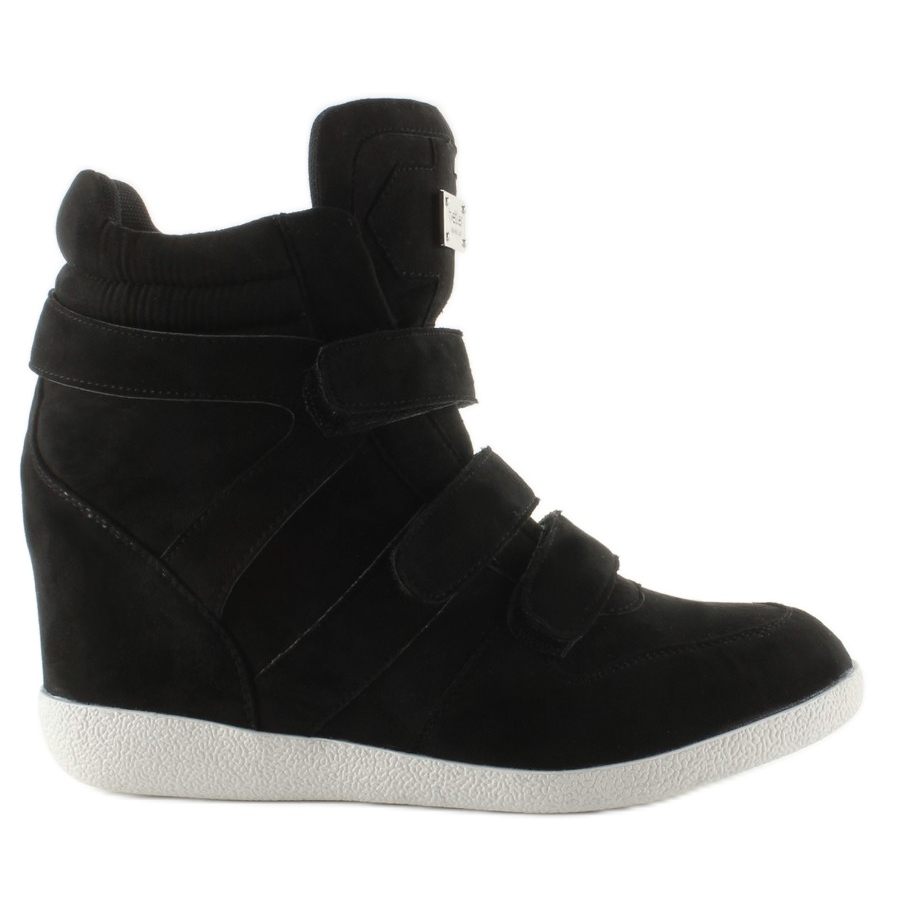 Bemutatjuk a JT36 velúr magasszárú tornacipőt klasszikus fekete színben, mely ötvözi az eleganciát és a sportos karaktert. Ezek az egyedi, 7 cm magas rejtett sarkú cipők tökéletes választás a kényelmet és a divatos megjelenést értékelő nők számára.