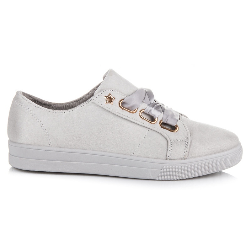 Részletek: Ideal Shoes Velúr tornacipő szalaggal szürke