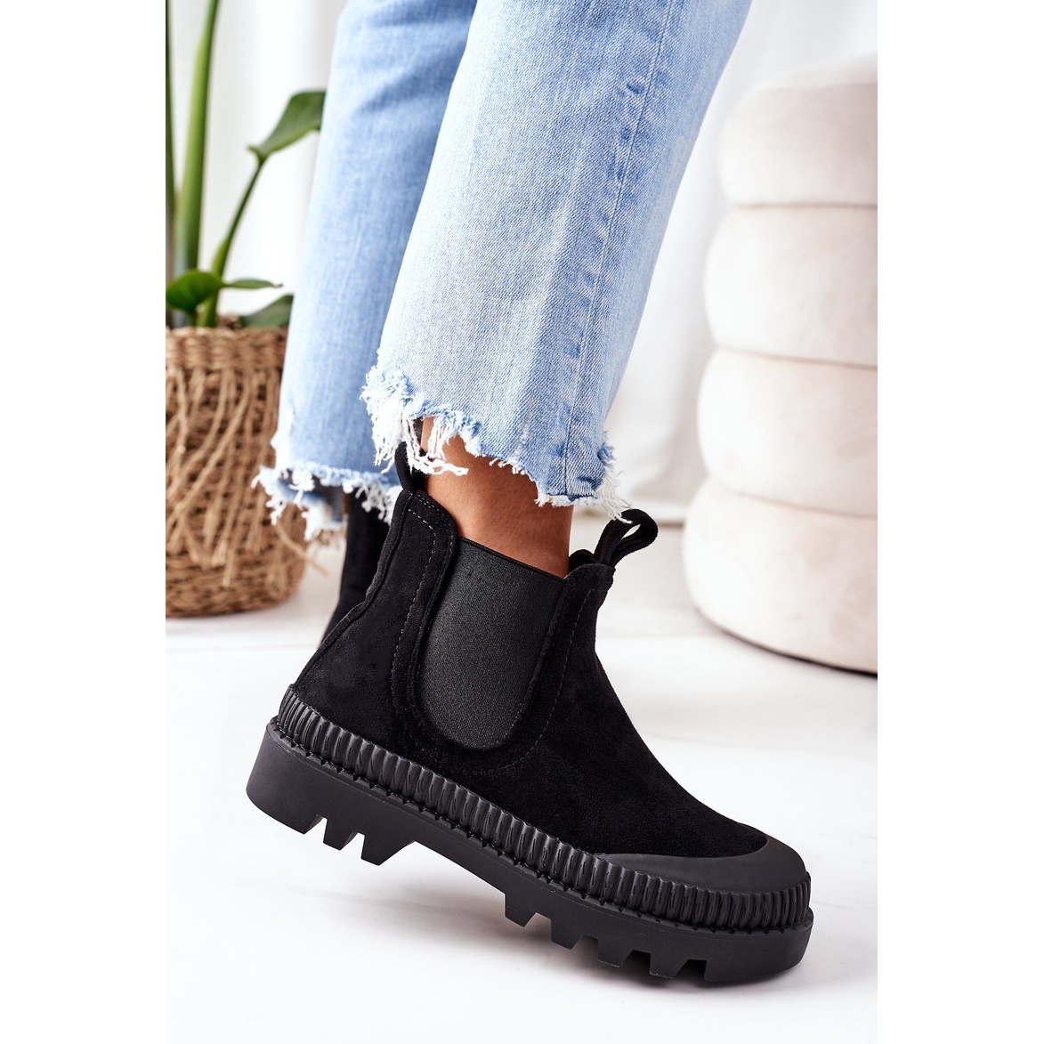Fedezze fel az eleganciát és a kényelmet a Mulanka fekete platformmunkásaival. Az öko-velúrból készült női bokacsizma a stílus és a funkcionalitás tökéletes kombinációja. A felsőrész rugalmas szalagjai optimális illeszkedést biztosítanak a lábfejhez, ami nemcsak divatossá, hanem mindennapi használatra is kényelmessé teszi.