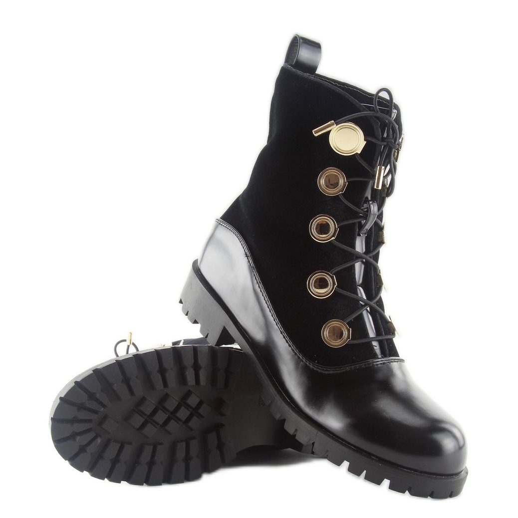 Fedezze fel az egyedi stílust és kényelmet a fekete gombos velúr táskák segítségével R113p Black! Ez az elegáns, katonai stílusú női csizma tökéletes választás azoknak a nőknek, akik értékelik a divatot és a kényelmet. Eredeti szabásukat kiváló minőségű anyagok kombinációja különbözteti meg - a lábfej egy része teljes kiőrlésű ökobőrből, a felsőrész pedig luxusbársonyból készült, ami nemcsak esztétikus megjelenést, hanem tartósságot is biztosít.