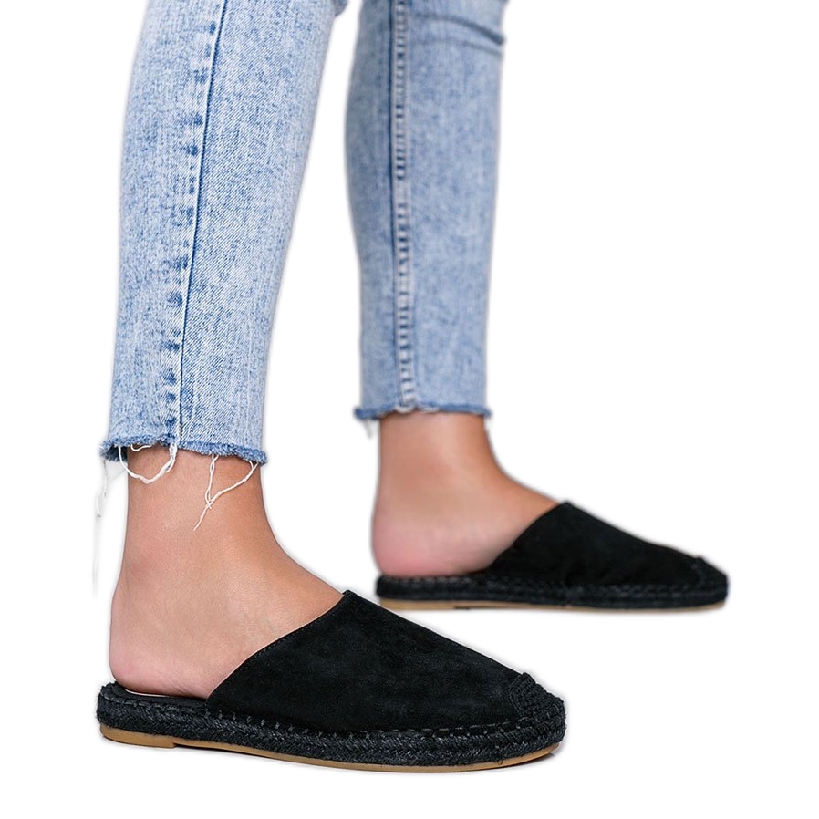 Fedezze fel a nyári trendeket a fekete Venus zárt papucsokkal! Ezek a stílusos papucsok, amelyeket az elegáns espadrillák ihlettek, tökéletes választás a meleg napokra. A felsőrész gondosan kiváló minőségű ökológiai velúrbőrből készült, amely nem csak a divatos megjelenést, hanem a viselési kényelmet is garantálja.