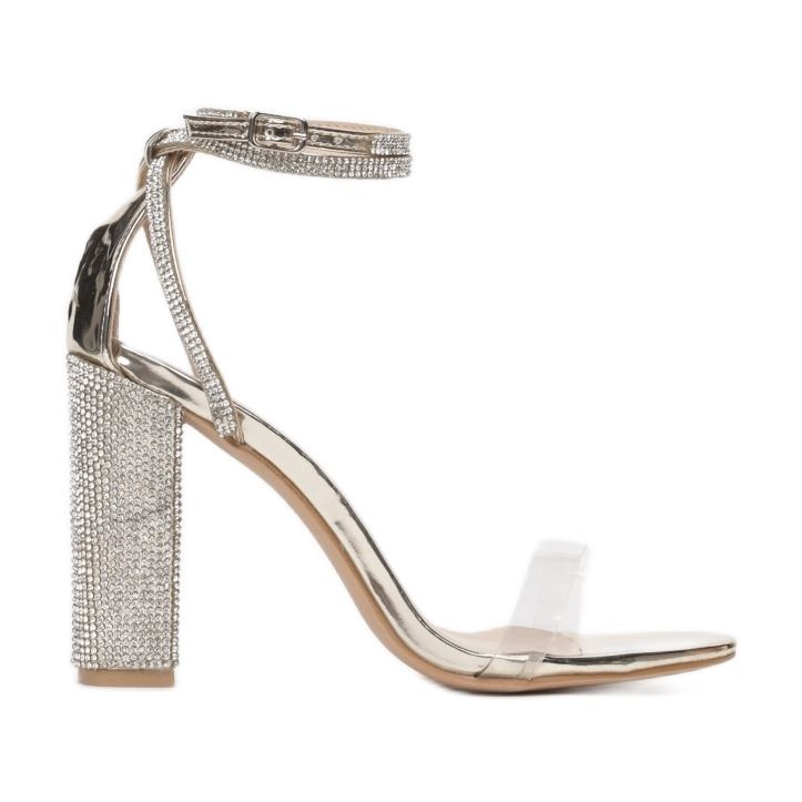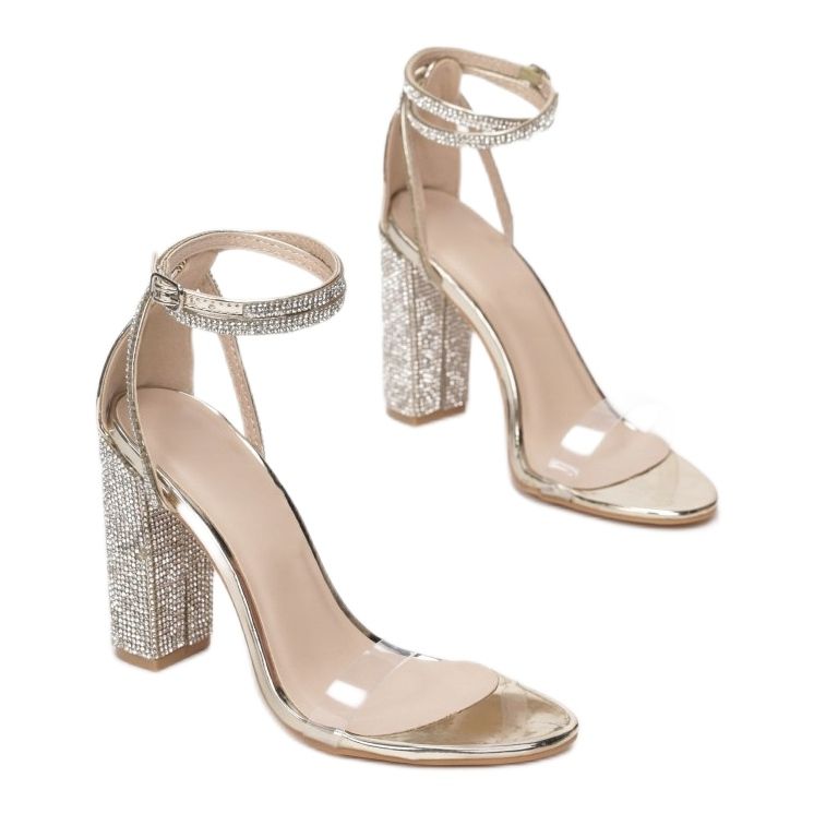 A 10,5 cm-es sarokmagasság a tömbsarok alapján lehetővé teszi néhány centiméteres magasság hozzáadását, miközben biztosítja a kényelmet járás közben. A csatos rögzítés megkönnyíti a fel- és levételt, a további elemek, például strasszok és strasszok pedig egyedi karaktert és fényt adnak a szandálnak.