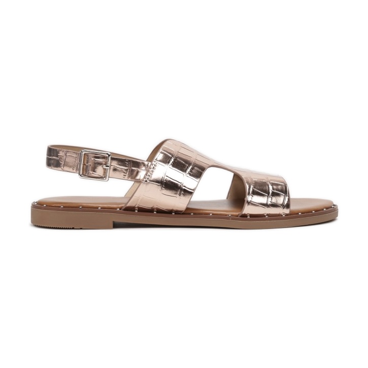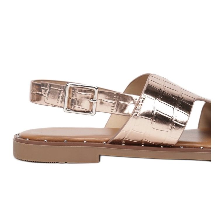 A Vices 2016-6-449 pezsgő árnyalatú szandál tökéletes választás azoknak a nőknek, akik értékelik az eleganciát a kényelemmel kombinálva. Ezeket a klasszikus lapos talpú szandálokat kiváló kidolgozás és modern dizájn jellemzi. Az ökobőrből készült felsőrész krokodilbőrt imitáló lenyűgöző dombornyomással díszített, mely egyedi karaktert ad.