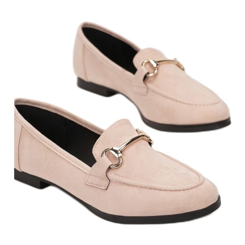 A mokaszinok lekerekített orrúak, ami klasszikus esztétikát ad. A cipő elején finom arany csat található, amely egyedi karaktert kölcsönöz neki. A bebújós kialakításnak köszönhetően a cipő fel- és levétele rendkívül egyszerű és kényelmes. A puha, beépített sarokpult további kényelmet garantál, a fekete szintetikus talp pedig futófelülettel stabilizálja minden lépését.