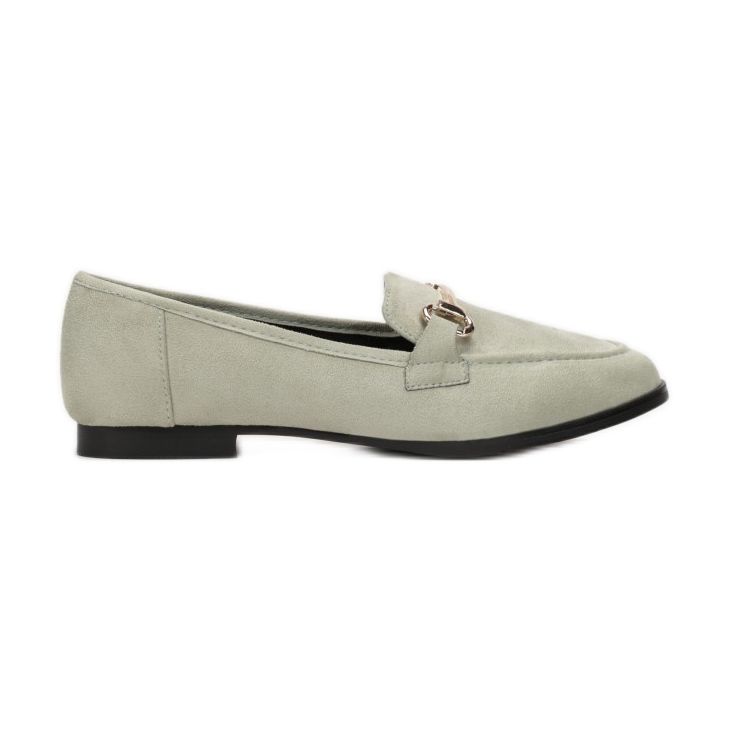 Ezt a modellt a klasszikus szabás kerek orrral és a cipő elején található arany csat formájában lévő finom díszítéssel jellemzi, amely finoman hangsúlyozza ezeknek a mokaszinoknak az eleganciáját. A felcsúsztatható kialakítás gyors és kényelmes viseletet tesz lehetővé, így nagyszerű választás a mindennapi használatra.