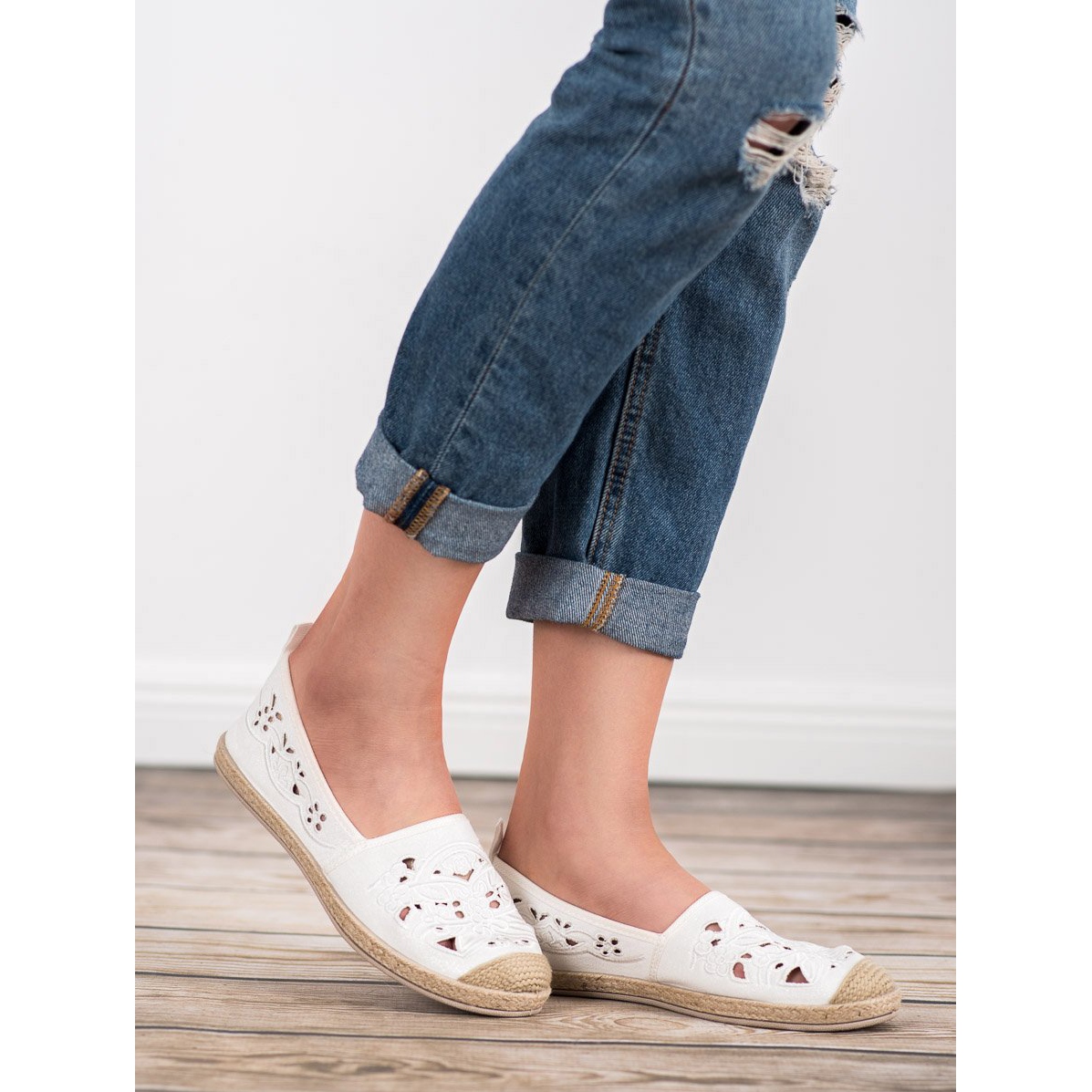 A cipők fehér színének köszönhetően tökéletesen passzolnak a különféle nyári stílusokhoz, frissességet és könnyedséget adva. Az áttört minta és a becsúsztatható rögzítés nem csak vonzóvá, de praktikussá is teszi ezeket az espadrillákat, tökéletesek a mindennapi használatra.