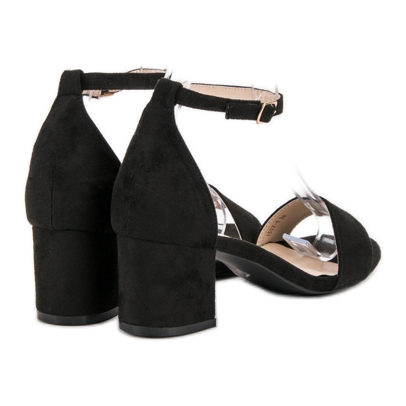 A VICES fekete velúr szandál az elegancia és a kényelem tökéletes kombinációja, amely minden nő ruhatárában megtalálható. A környezetbarát velúrból készült klasszikus cipők minden ruhát elegánssá varázsolnak. A stabil 6 cm-es sarok kényelmes viseletet tesz lehetővé egész nap, mind a mindennapi kirándulások során, mind a különleges alkalmakkor.