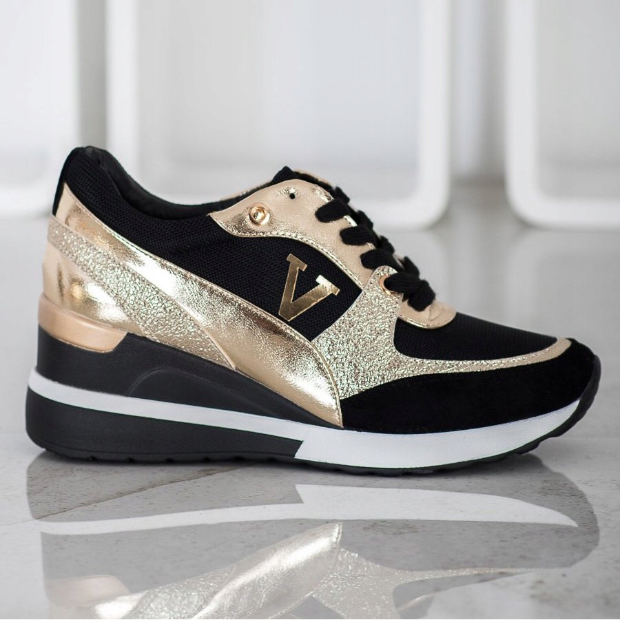 A Vinceza wedge tornacipők fekete és arany divatos kombinációjában ideális választás a kényelmet és a stílust értékelő nők számára. Az ökológiai bőrből készült klasszikus sportcipők a modern dizájnt ötvözik a funkcionalitással, így tökéletesek a mindennapi stílushoz.