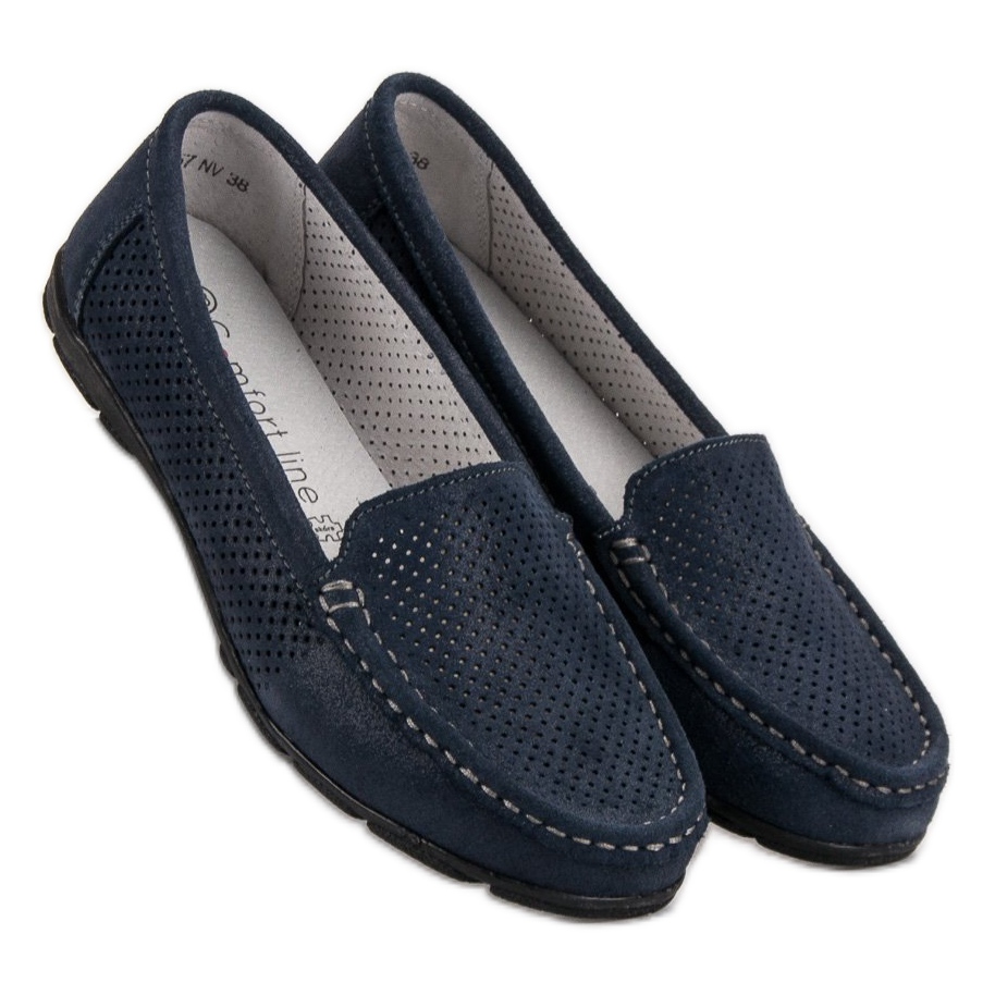 Elegáns sötétkék színben mutatjuk be a VINCEZA áttört mokaszinokat, melyek a kényelem, a stílus és a minőségi kidolgozás tökéletes kombinációja. Ezeket az egyedi cipőket olyan nők számára készítették, akik szeretnék hangsúlyozni személyiségüket, miközben élvezik a viselési kényelmet.