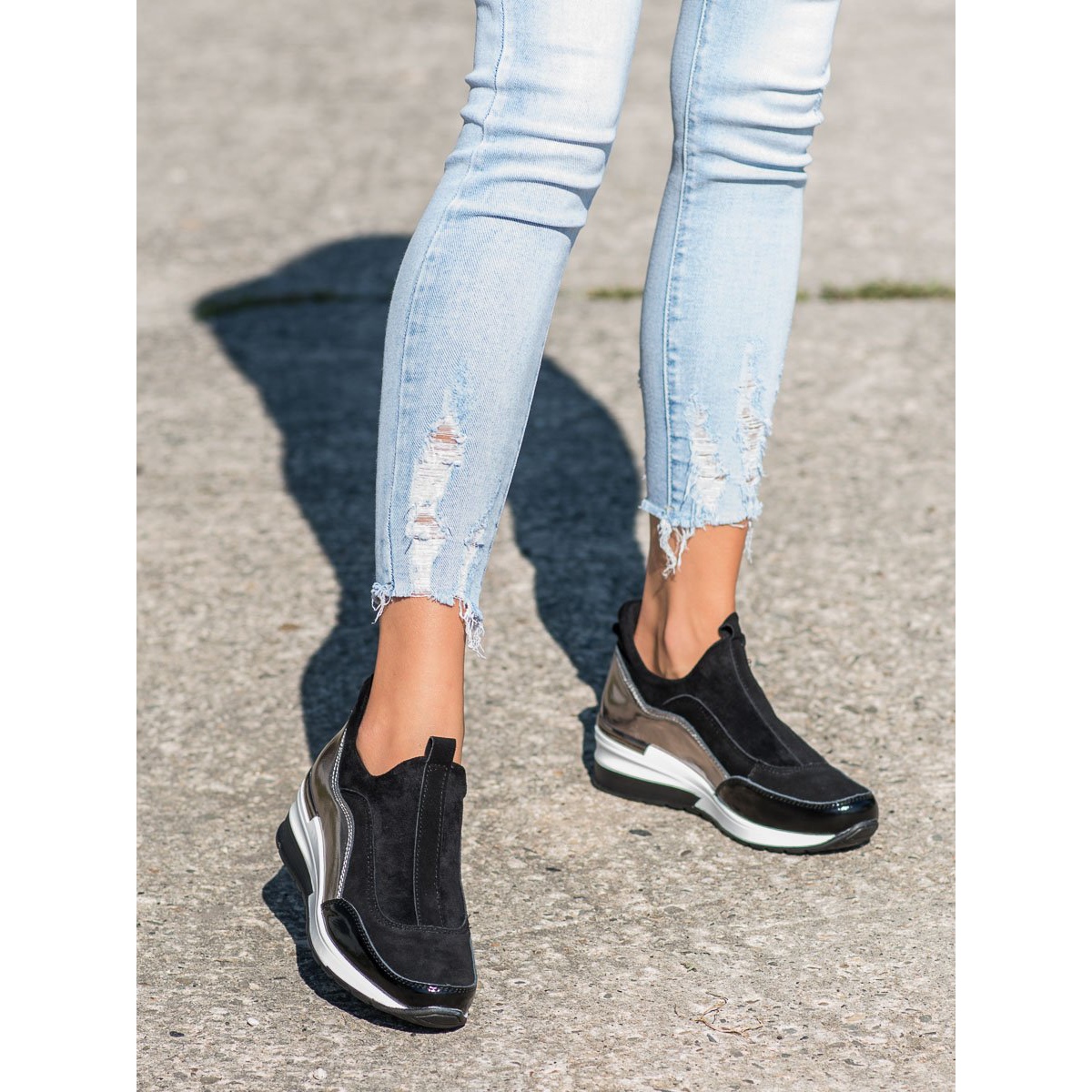 Fedezze fel az elegáns VINCEZA bőr bebújós cipőt klasszikus fekete színben, mely a mindennapok tökéletes megoldása lesz. Ezek a női sportcipők a divatot és a funkcionalitást ötvözik, így könnyedén illesztheted a különböző stílusokhoz.