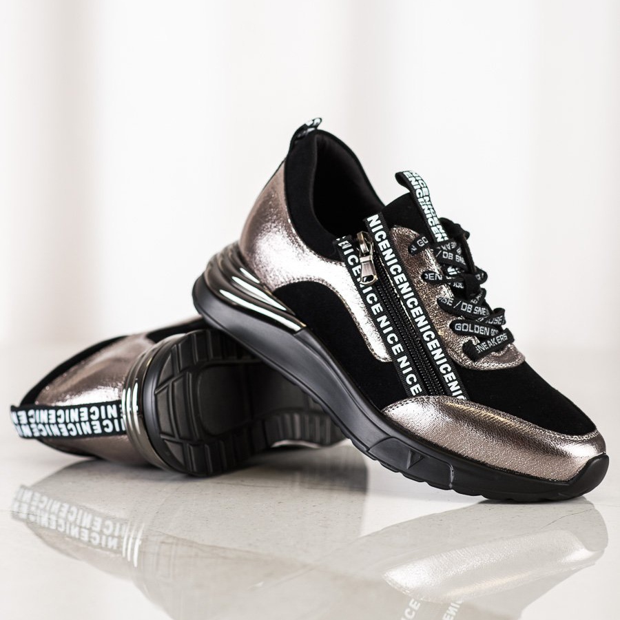 Az arany díszítésű fekete cipzáras VINCEZA tornacipők tökéletes választás a stílust, kényelmet és sokoldalúságot értékelő nők számára. Ezek a sportcipők tökéletesen illeszkednek a divatirányzatok közé, tökéletesek a mindennapi használatra.