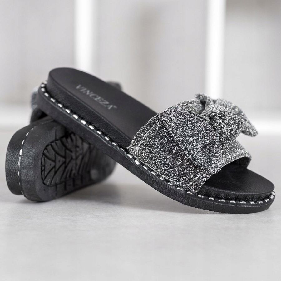 Vinceza VINCEZA csillogó papucs fekete szürke