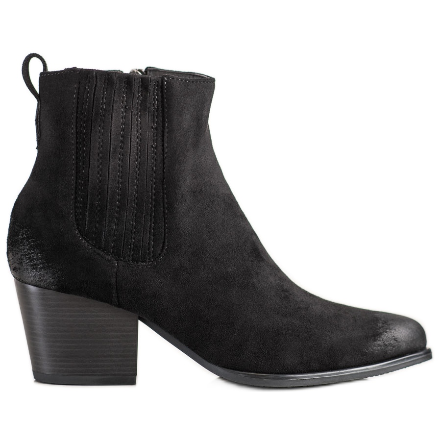 Íme a stílus és a kényelem tökéletes kombinációja – a fekete alkalmi VINCEZA bokacsizma, amely minden őszi-téli stílust kiegészít majd. Kiváló minőségű velúrutánzatból készültek, elegánsak és időtlenek. Minimalista, minták nélküli dizájnjuk alkalmassá teszi őket mindennapi és formálisabb ruhákhoz is.