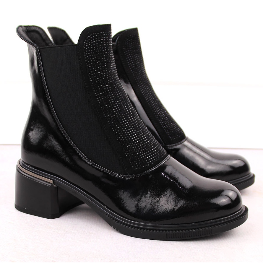Részletek: Vinceza fekete lakkozott női bokacsizma cirkóniával