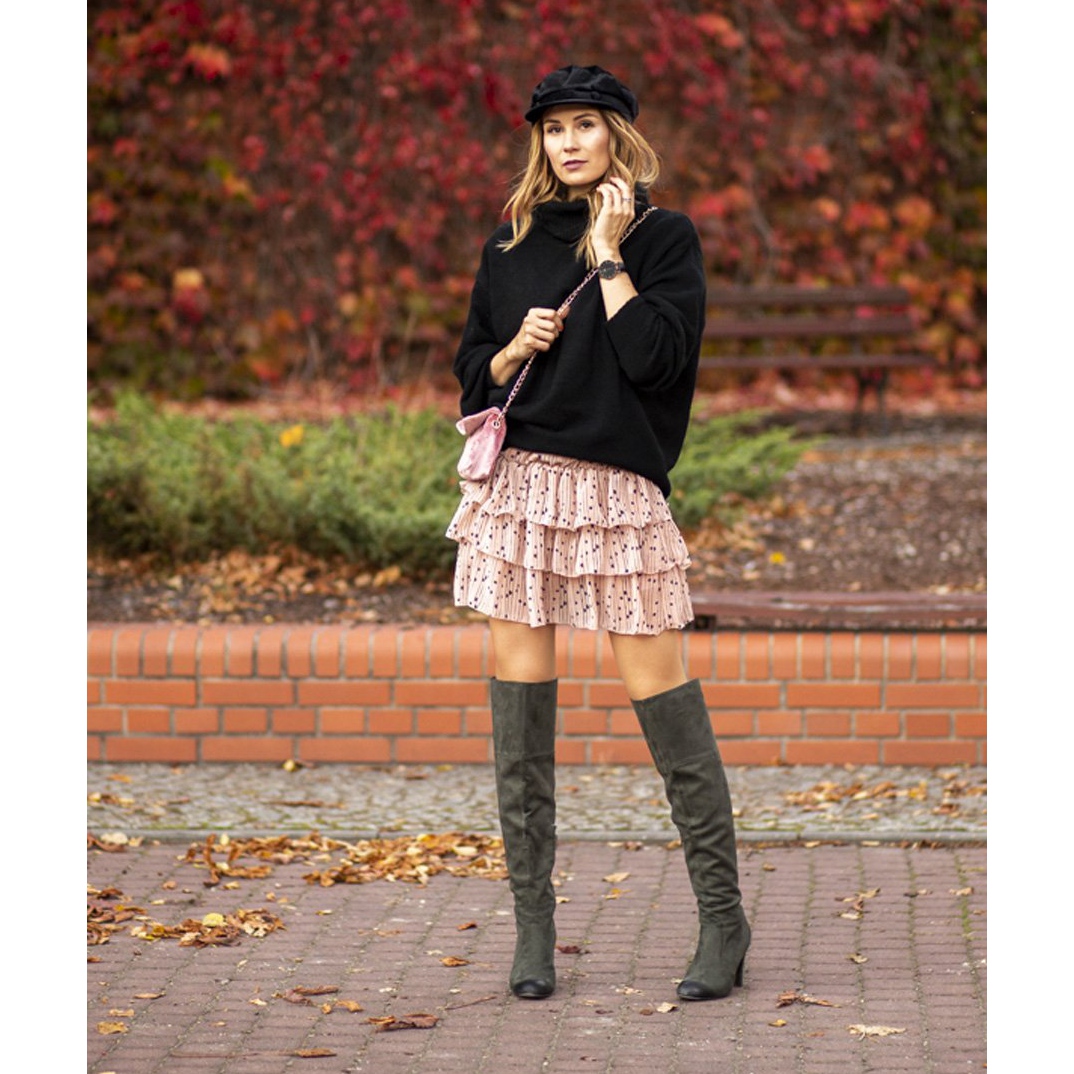 A stabil, erős, 9 cm magas sarok nőies bájt kölcsönöz, a speciálisan profilozott talpbetét pedig csökkenti a lábra nehezedő nyomást, így kényelmes viseletet biztosít a hosszú órákon át tartó viselet során is. A cipőtakaróval ellátott szigetelésnek köszönhetően ez a csizma tökéletes a hidegebb napokra, védve a hidegtől.