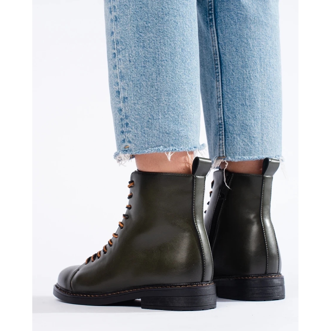 Részletek: Vinceza sötétzöld női fűzős csizma