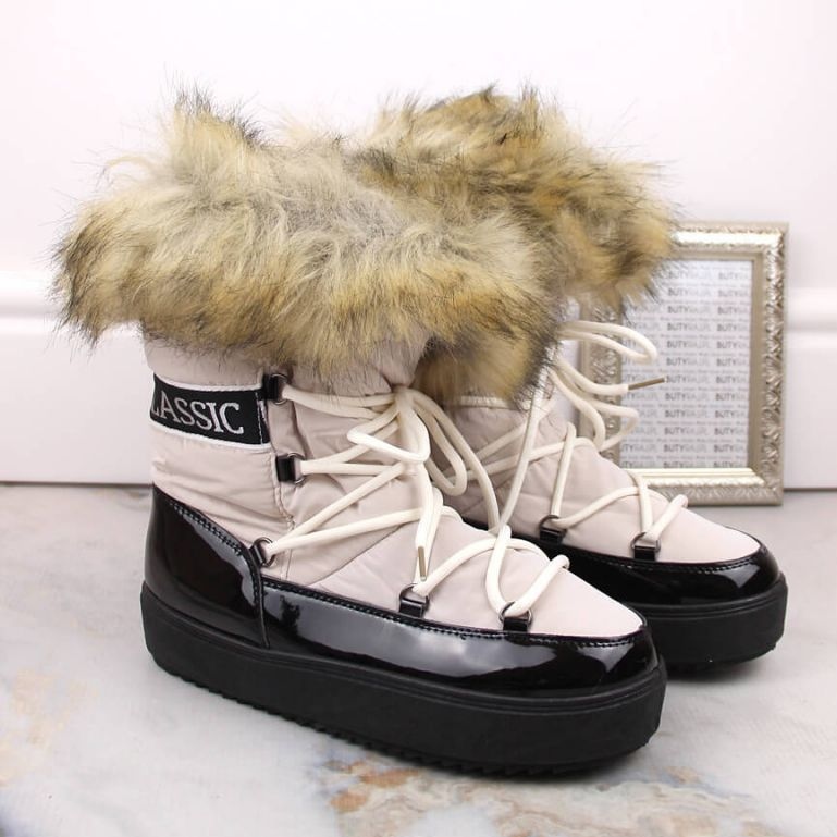 Vinceza Vinceza W JAN262 bézs fűzős hócsizma bundával