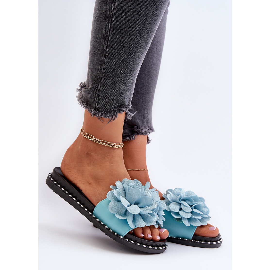 Inna marka Virágokkal díszített női papucsok, kék cellanen