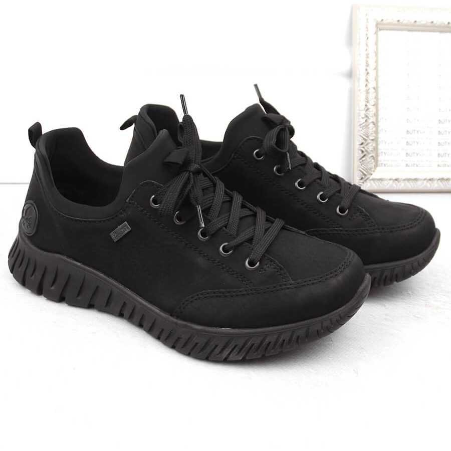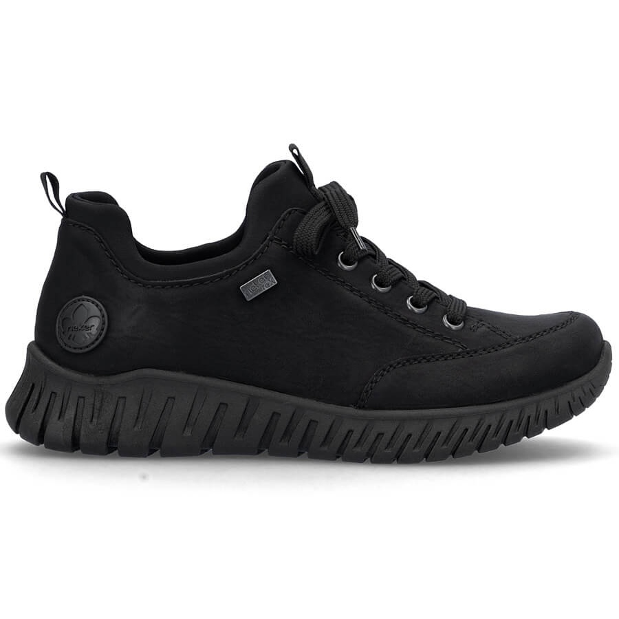 Részletek: Vízálló, kényelmes női fekete bebújós cipő Rieker M5352-00
