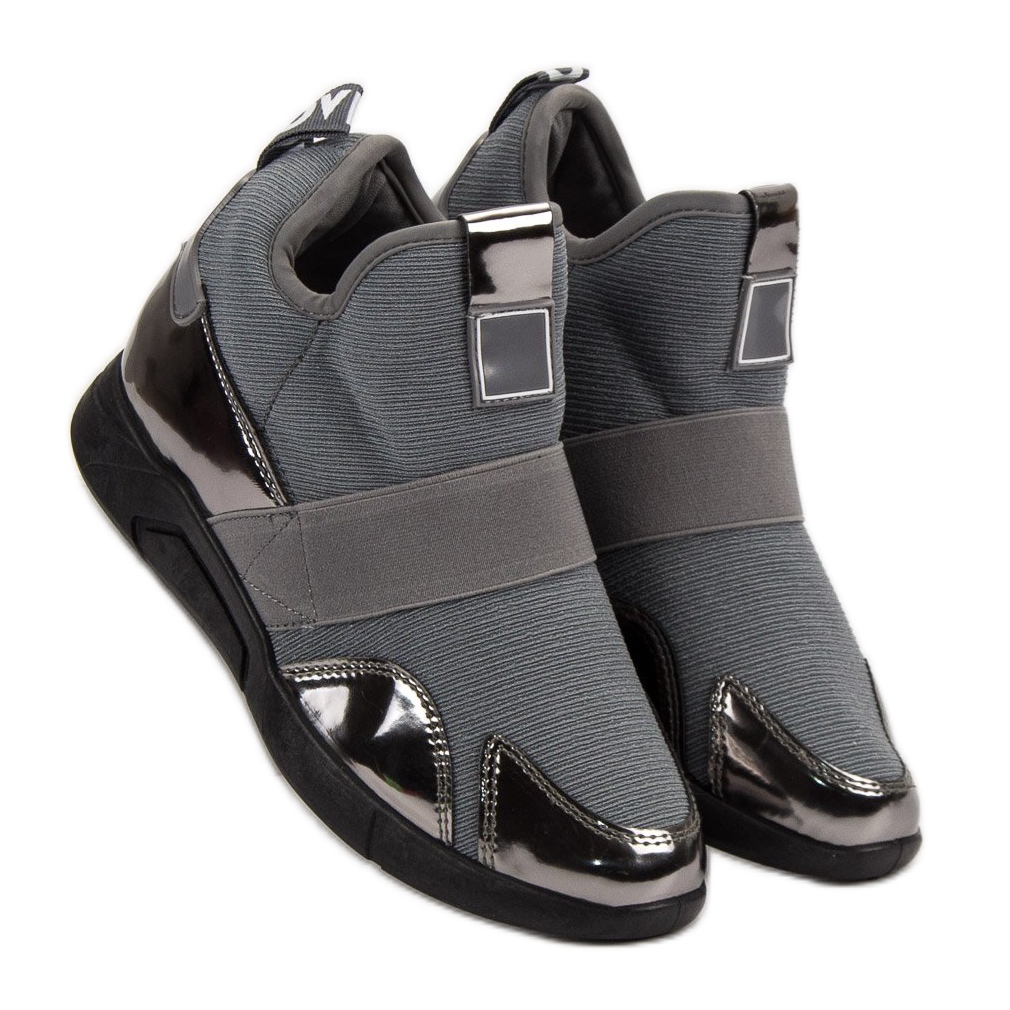 Fedezzen fel egy egyedi modellt, amely a sportos stílust az eleganciával ötvözi – felbújós, szürke színű cipők. Ezeket az eredeti cipőket a modern nők számára készítették, akik kényelmesen és stílusosan szeretnének érezni magukat. Az 5-8 cm-es ékmagasságnak köszönhetően további centimétereket nyerhet, ami minden helyzetben növeli az önbizalmat.