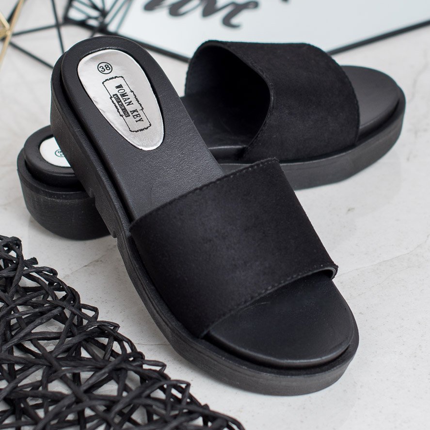 A kiváló minőségű anyagokból készült papucsok minimalista, klasszikus stílusukkal rabul ejtik, a taposott talp pedig megfelelő tapadást és stabilitást biztosít. Az 5 cm-es ékmagasság és a 3 cm magas platform finom varázst ad a kényelem feláldozása nélkül. A nyitott saroknak és bebújós kialakításnak köszönhetően a papucsok fel- és levétele rendkívül gyors és kényelmes.