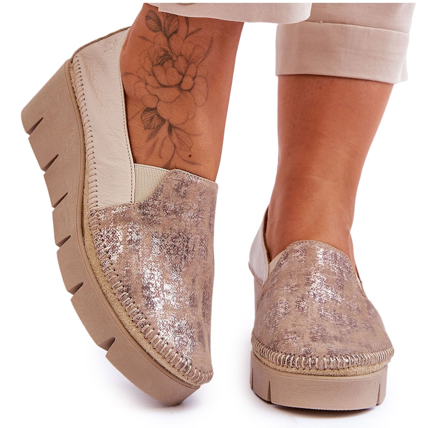 Bőr cipők a Wedge Maciejka 5814A-10-Beige-en