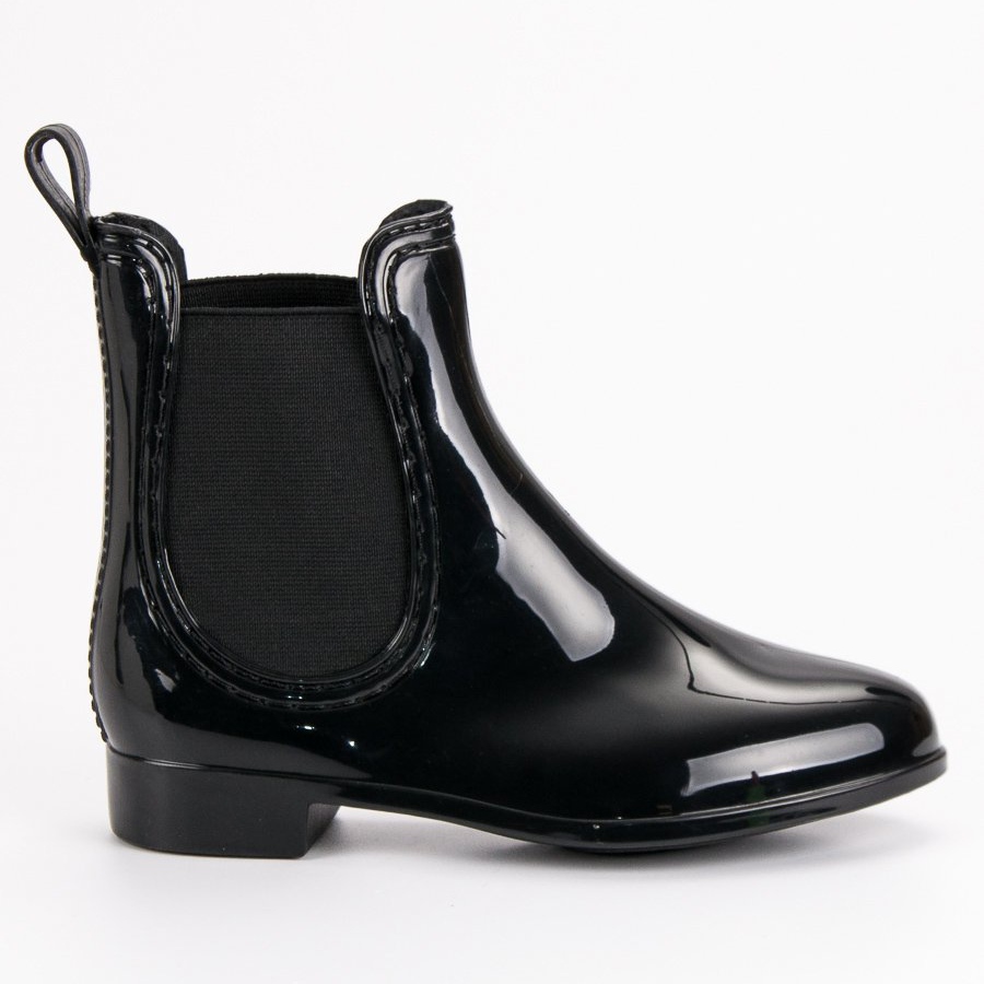 Galoshes a lányoknak - klasszikus, univerzális, elegáns fekete színű. Teljesen gumiból készülnek, és hatékony védelmet nyújtanak a víz és az iszap ellen, ideálisak esős napokhoz és kívüli játékokhoz. Egy egyszerű karakter nélküli vágás miatt sok stílus megegyezik.