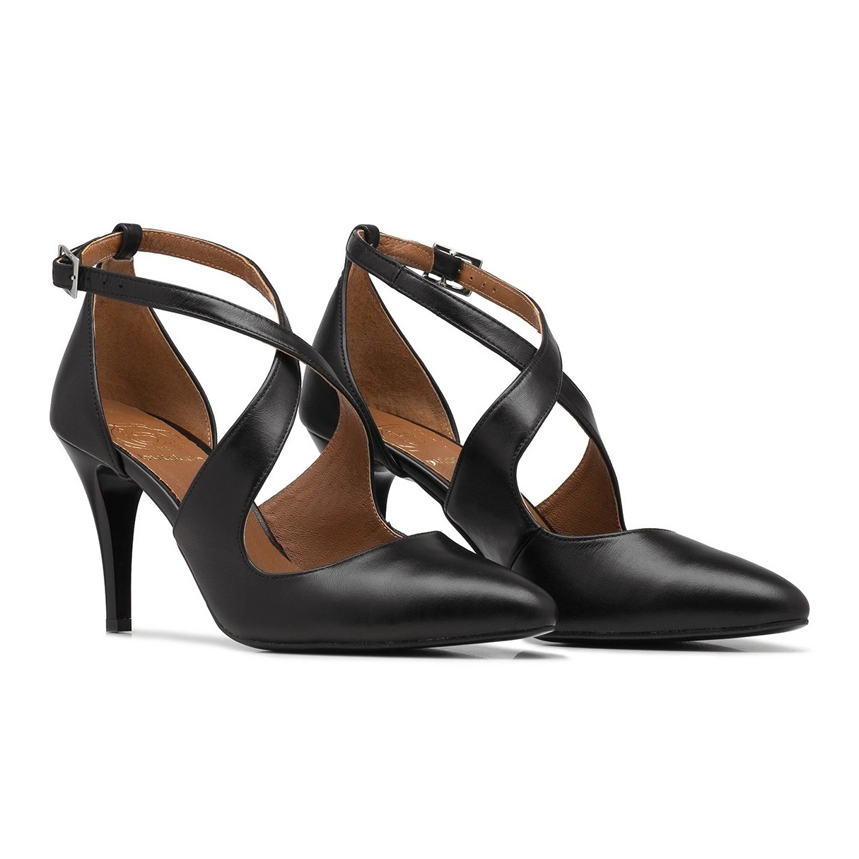 Részletek: BUTDAM Xena fekete táncsarkú hegyes orrral és pántokkal