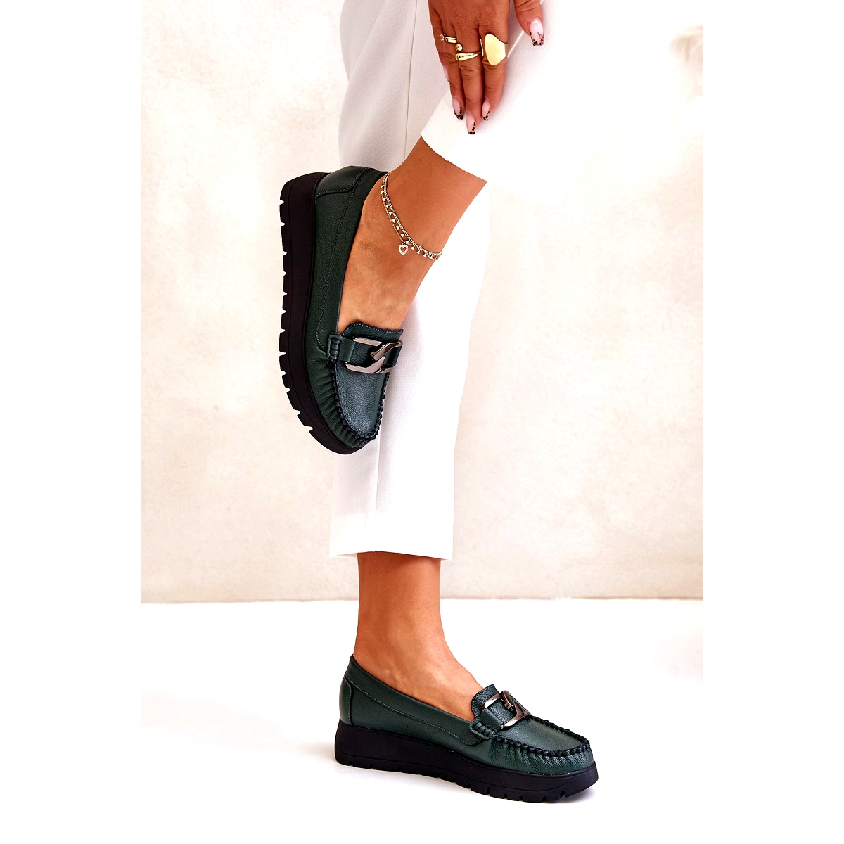 Zazoo Zazoo 10141 bőr mokaszinok egy emelvényen díszítéssel, sötétzöld