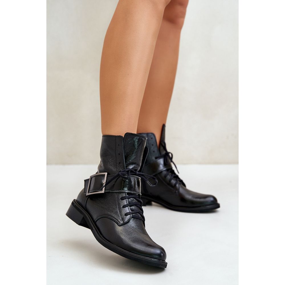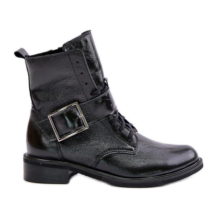 Részletek: Zazoo 2949 bőr bokacsizma csattal, fekete