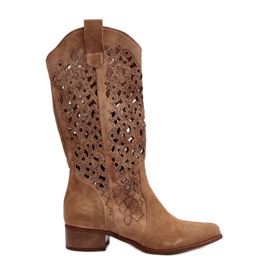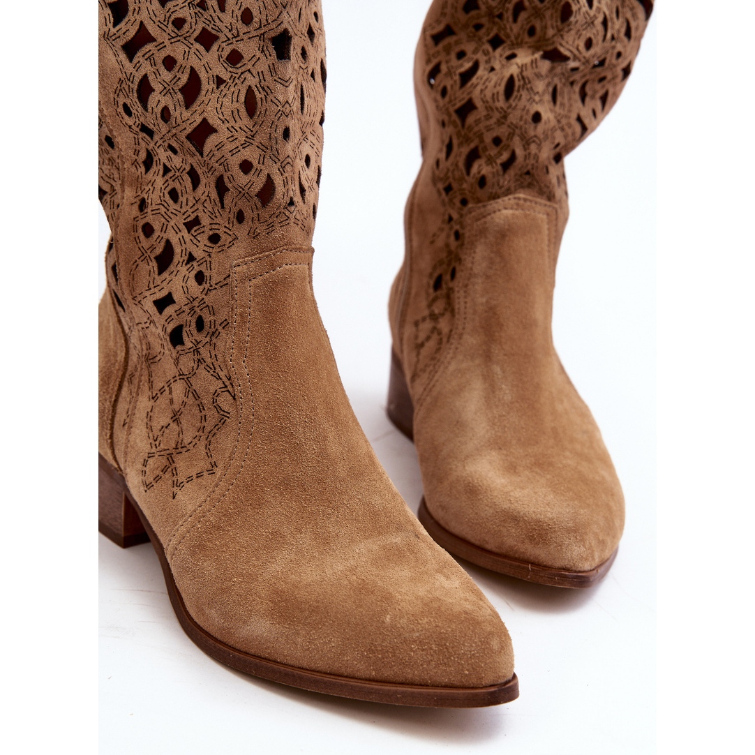 Zazoo Zazoo 3403 női áttört csizma alacsony sarkú, bézs színű