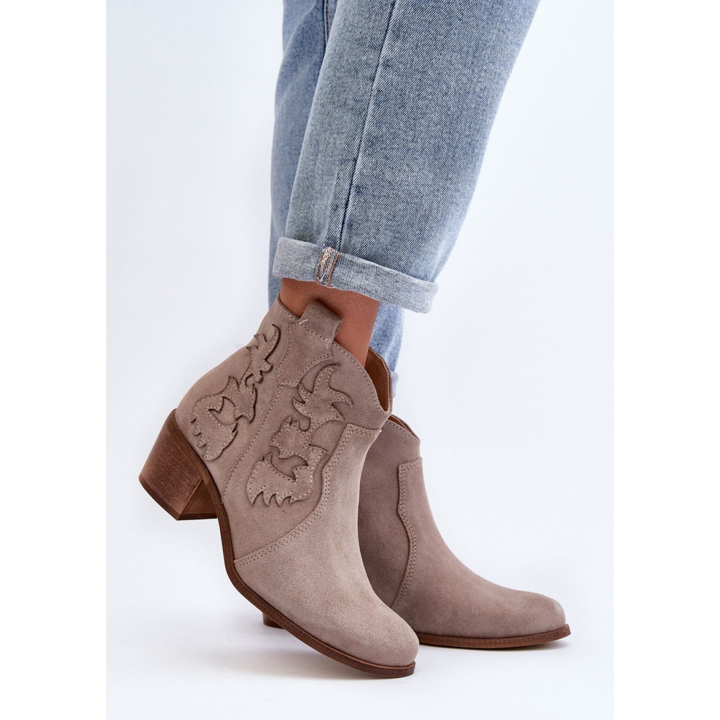 A Botki modell Zazoo 3426 Cappuccino a Step In Style -tól a tökéletes választás azoknak a nőknek, akik a kényelmet és az eleganciát akarják kombinálni. Kiváló minőségű természetes velúrból készültek, ezek a bézs csizmák nemcsak stílusosak, hanem tartósok is. 12 cm -es magas felső részük ragaszkodik a bokához, és a további dekoratív foltok egyedi karaktert adnak nekik.