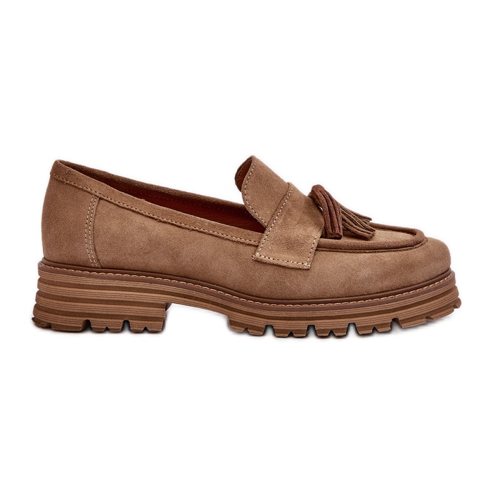 Zazoo Zazoo 3469 női velúr mokaszin rojtokkal, bézs