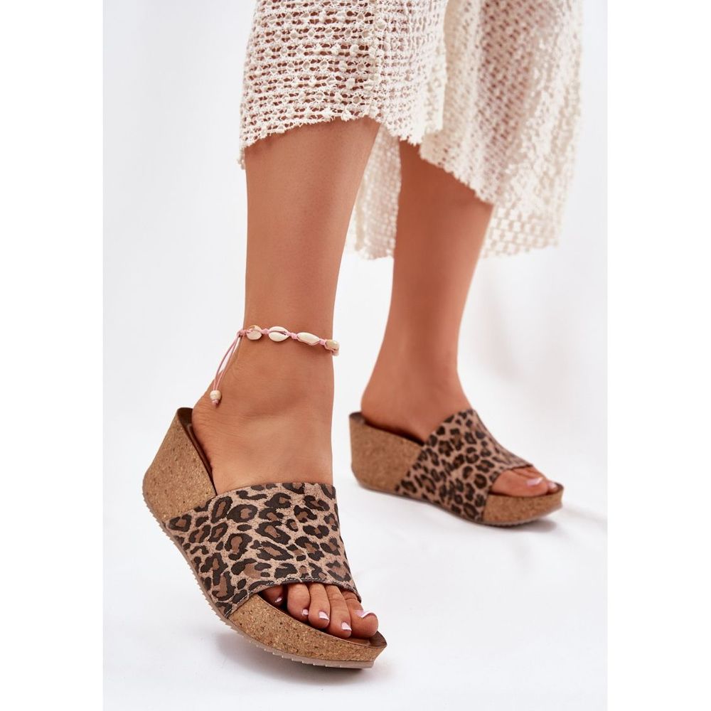 Részletek: Zazoo 40289 női bőr papucs a parafa ék leopárdán bézs