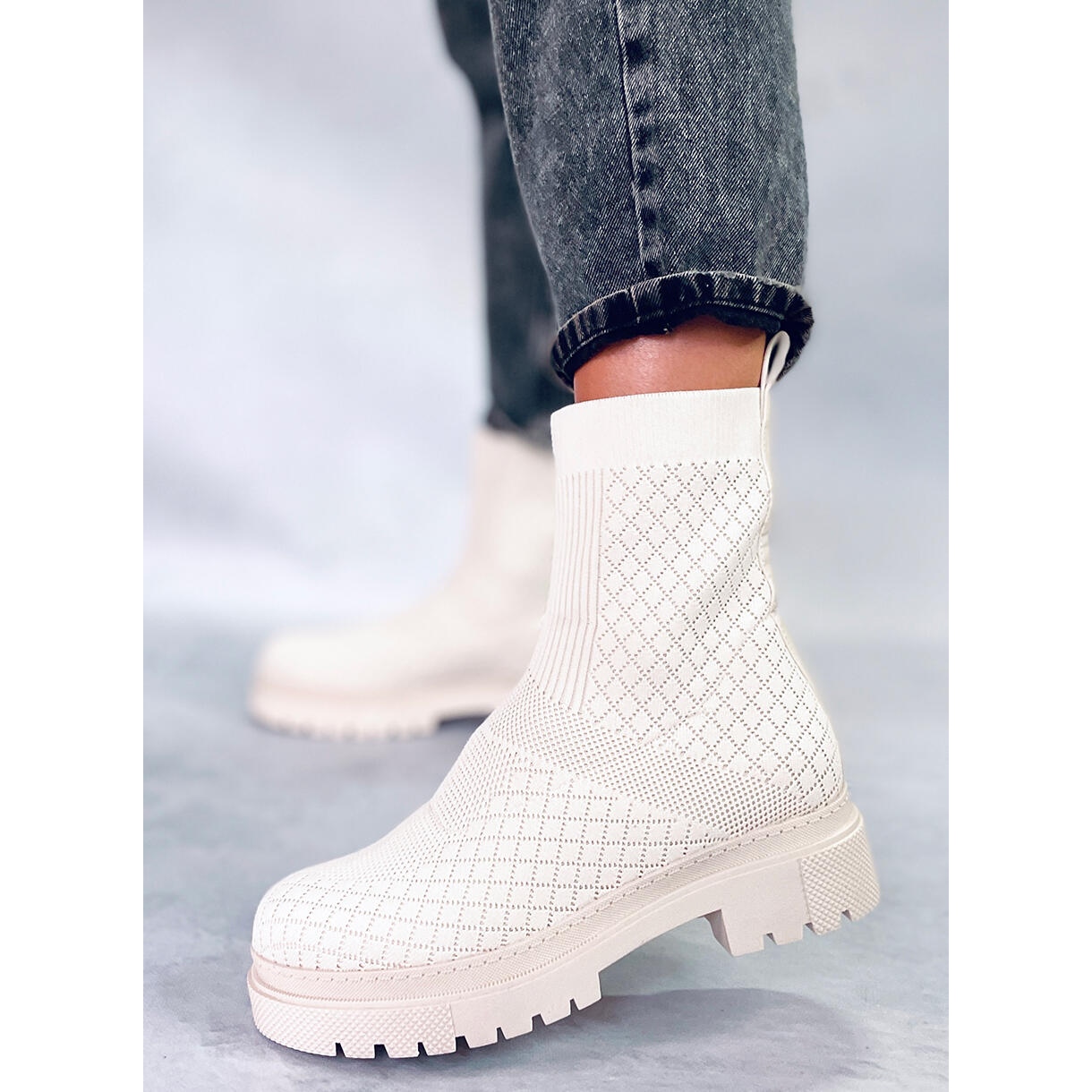 Részletek: BM Zoknis csizma Rueda Beige mintával bézs