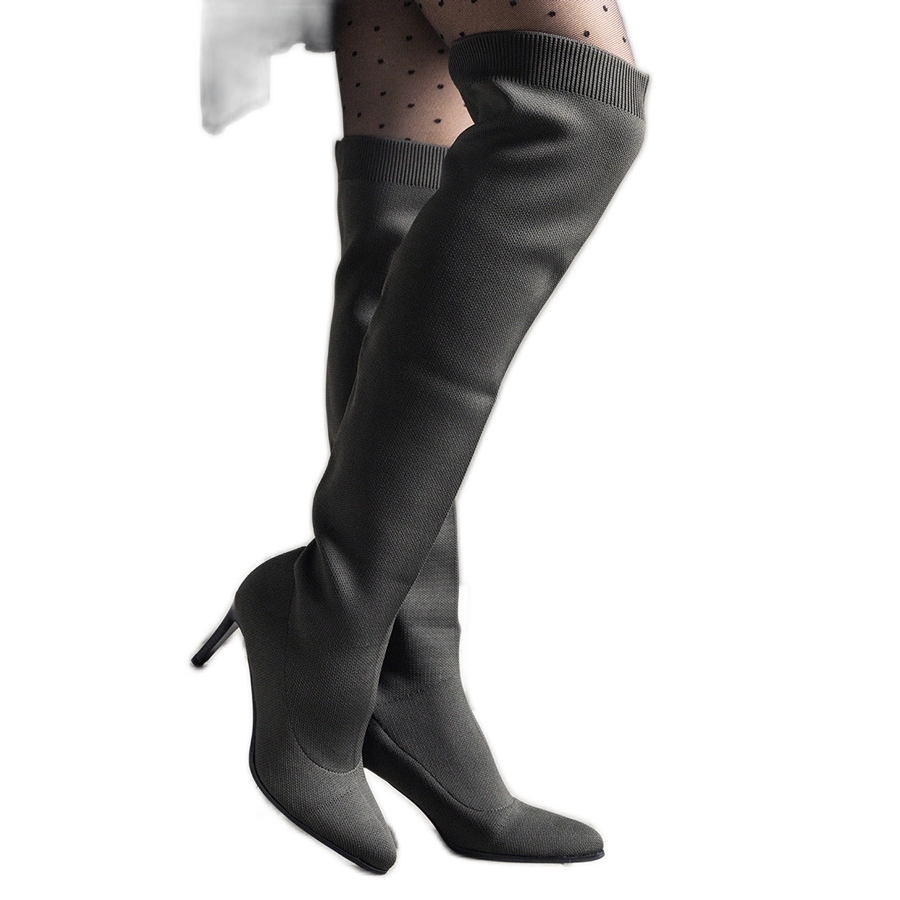 A zöld tolócsizma magas sarkú, elasztikus atari felső részén, ebben a szezonban a szezon abszolút slágere, amelyet minden női szekrényben meg kell találni. Elegáns, hegyes orruk és divatos, pézsmás formájuk tökéletesen illeszkedik a legújabb trendekbe. A térd feletti magasság (59 cm) és a 8,5 cm -es magas sarok hangsúlyozza az ábrát, és hozzáadja karcsúságát.