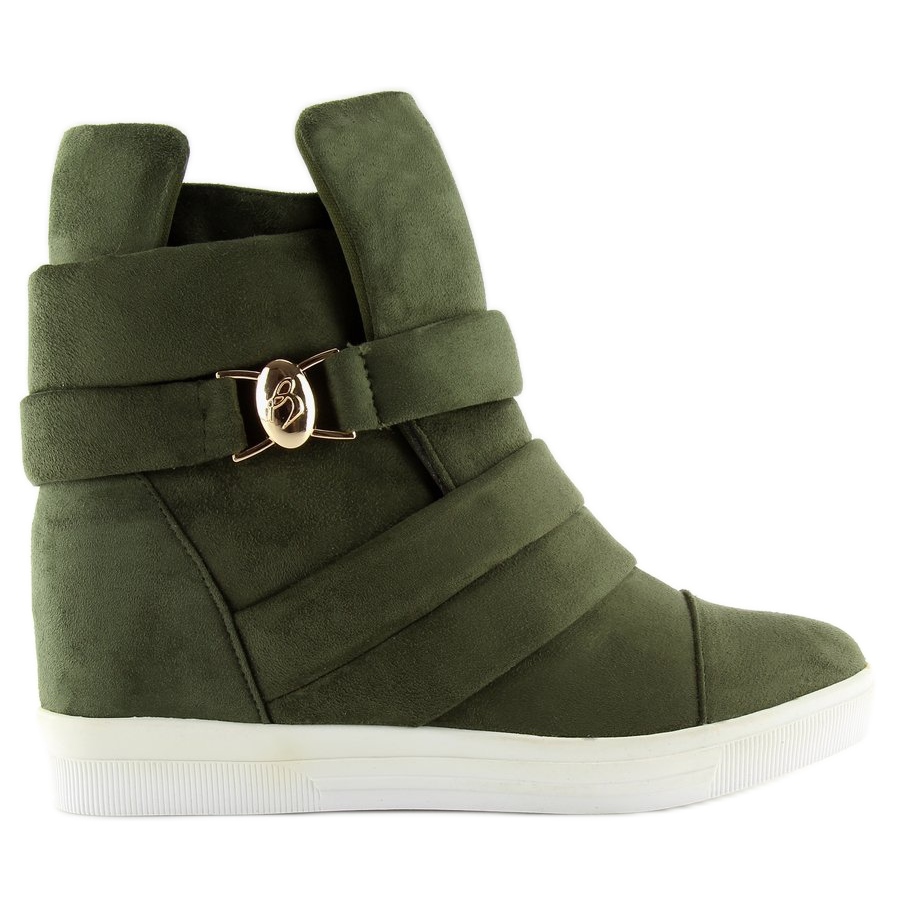 A H6507 A.GREEN női tornacipő a stílus és a kényelem tökéletes kombinációja, tökéletes a hidegebb napokra. Ezek az elegáns cipők 7 cm magas rejtett ékkel nem csak néhány centiméterrel növelik a magasságot, de a viselési kényelmet is garantálják. Felsőrészüket széles csíkok díszítik, amelyek finoman körbeölelik a lábszárat, és az arany díszítésnek köszönhetően felkeltik a figyelmet, enyhén fényűző akcentust adva az egésznek.