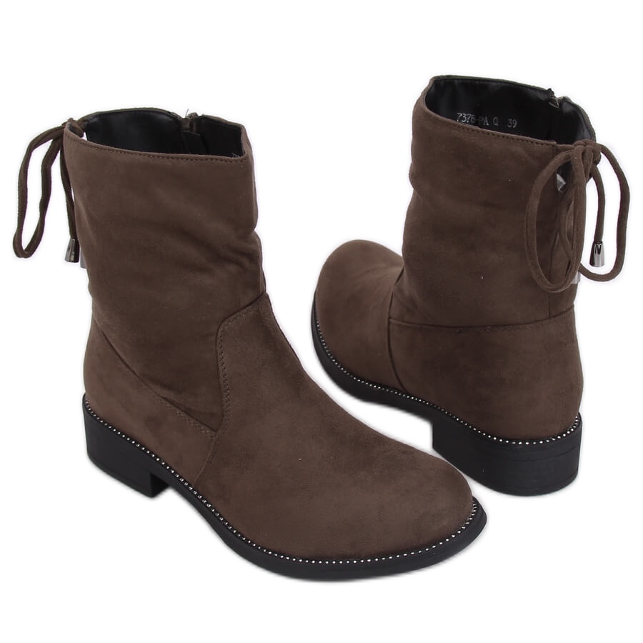 A 7378-PA Green női zöld khaki bokacsizma tökéletes választás azoknak a nőknek, akik értékelik a divatot és a kényelmet. Ezek az elegáns lapos csizmák modern dizájnjával tűnnek ki, amely vonzza a tekintetet. A széles, enyhén redőzött felsőrész és a hátul lévő dekoratív nyakkendő egyedi karaktert kölcsönöz nekik, a finom cirkóniákkal díszített fényes díszítés pedig egyedi fényt ad nekik.